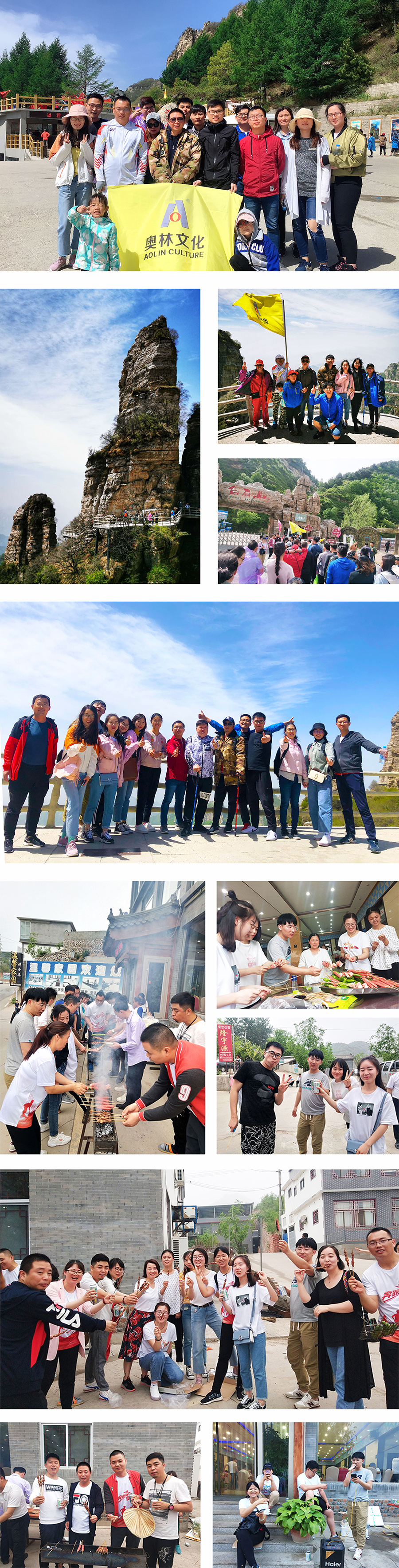 19日抵达5A景区白石山国家地质公园,白石山雄居八百里太行山最北端,最高峰云都峰海拔2096米。整个景区集黄山之奇、华山之险、张家界之秀于一身,可谓“雄”、“险”、“奇”、“幻”。带着老、中、青、少、幼各个年龄段的奥林人,扛着奥林的旗帜穿行在这峰林壁立的高山峡谷之中。大家一路互相加油鼓劲,一起登上了双雄玻璃栈道的观景平台,借“三十六洞天福地”之灵秀,煅造奥林团队之精神。