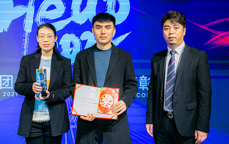 大会还现场连线了坚守在驻外岗位无法回津的获奖员工,吴雪峰和孙红雨,他们通过线上视频的形式表达了获奖的喜悦和对公司的感谢,并表示一定圆满完成任务,不辱奥林使命。