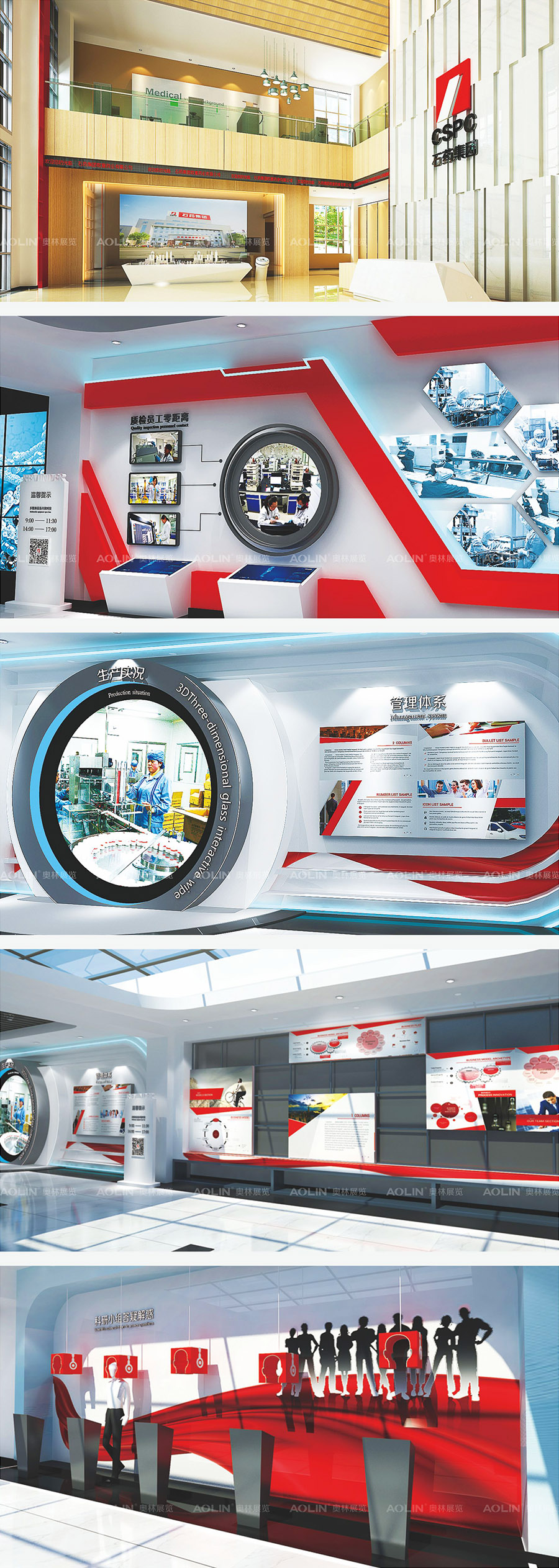 在生产通道,观众可通过互动屏幕观看车间内部各个环节的生产状况,并与相关岗位上的员工面对面交流,考虑到制药工厂严格的环境卫生要求,奥林使用独特的技术工艺,展示展板采用整体基座+多点位悬挂的模式,可实现工厂生产、现场组装、易拆装、无污染,并极大降低日后展馆更新维护成本。
